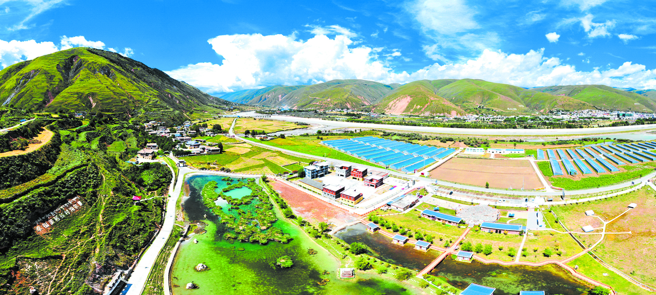 雨后的清晨,與四川省甘孜藏族自治州道孚縣城隔河相望的溝爾普村宛如仙境。麥粒神山云霧繚繞,磨子河靜靜流過(guò),色彩鮮艷的藏式民居外,一片蔬菜大棚閃著銀光。