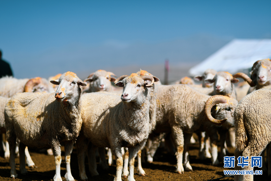 圖為金泰牧場內(nèi)的茶卡羊。新華網(wǎng) 宋忠勇 攝