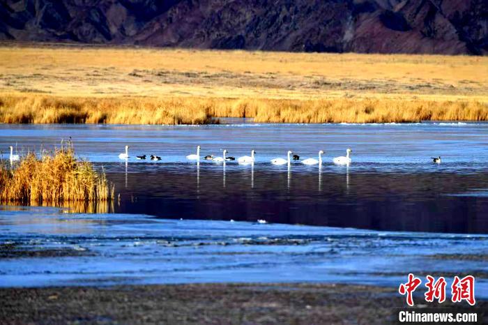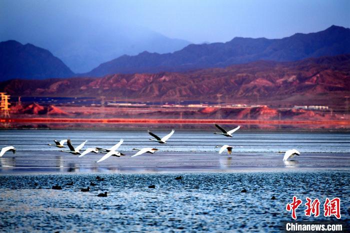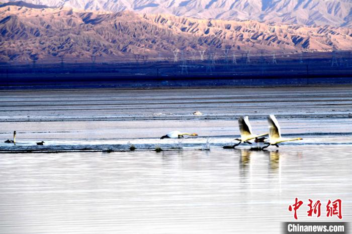 大天鵝飛抵柴達木盆地都蘭湖國家濕地公園“越冬”