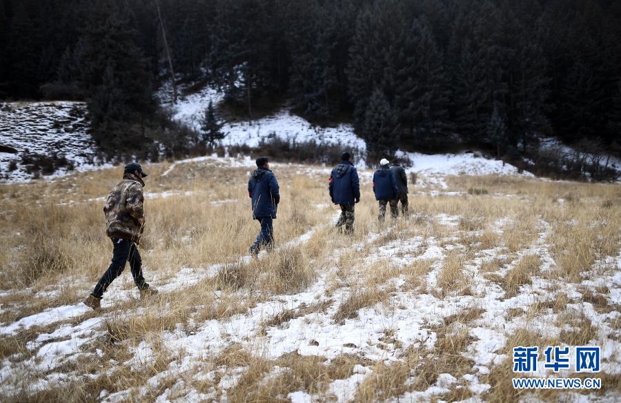 12月8日,祁連山國(guó)家公園扎麻什管護(hù)站生態(tài)管護(hù)員昂旦才讓(右一)和同伴們?cè)谘沧o(hù)途中。新華社記者 張宏祥 攝