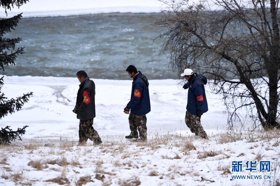 12月8日,祁連山國(guó)家公園扎麻什管護(hù)站生態(tài)管護(hù)員在黑河邊巡查。新華社記者 張宏祥 攝
