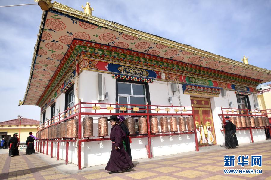 3月14日,老人們在治多縣幸福敬老院內(nèi)轉(zhuǎn)經(jīng)。新華社記者 張宏祥 攝