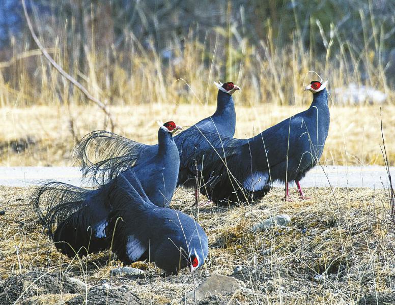 3月9日,在若爾蓋濕地最北部濕地深丘,一群藍馬雞正享受著午后的陽光。尹鋼 攝