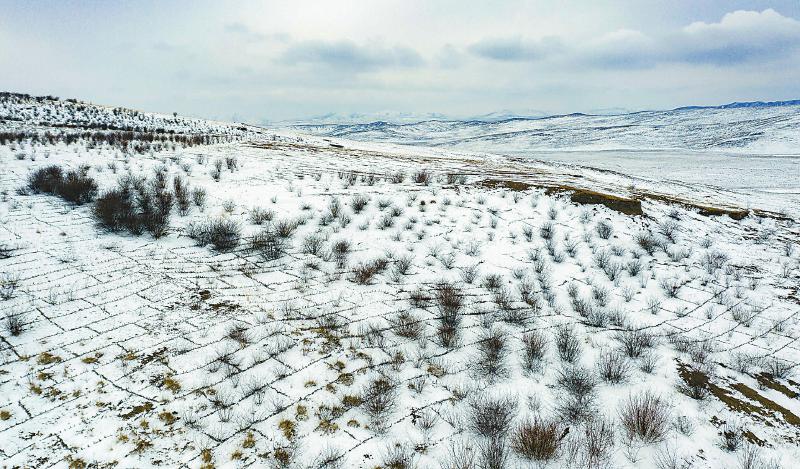 2021年3月6日拍攝的若爾蓋縣麥溪鄉(xiāng)和轄曼鎮(zhèn)實施防沙治沙項目。該項目取得良好效果,高原紅柳覆蓋沙化面積達85%以上。尹鋼 攝
