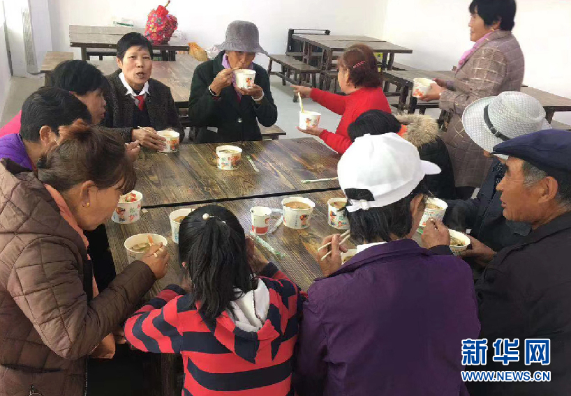 紅柳村村民們圍坐在一起就餐(資料照片)。新華社記者 王浡 攝