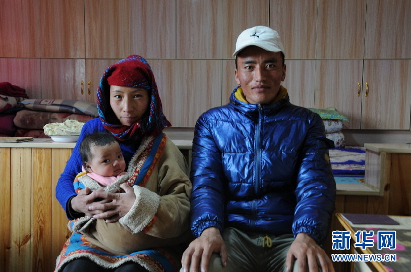 在青海省黃南藏族自治州尖扎縣尖扎灘鄉(xiāng)薩尕尼哈易地扶貧搬遷安置點,村民李加才讓與妻子尚周瑪、女兒曲珍措在家中合影(2020年12月17日攝)。新華社記者 顧玲 攝