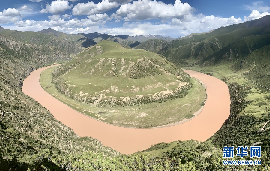 長江源頭干流河段通天河流經(jīng)青海省玉樹藏族自治州治多縣立新鄉(xiāng)葉青村,形成“萬里長江第一灣”(2020年8月26日攝)。新華社記者 李琳海 攝