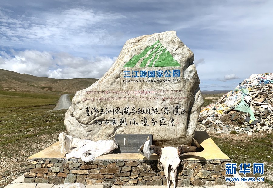 這是位于玉樹州曲麻萊縣境內(nèi)的青海三江源國家級(jí)自然保護(hù)區(qū)約古宗列保護(hù)分區(qū)紀(jì)念碑。(2020年8月27日攝)新華社記者 李琳海 攝