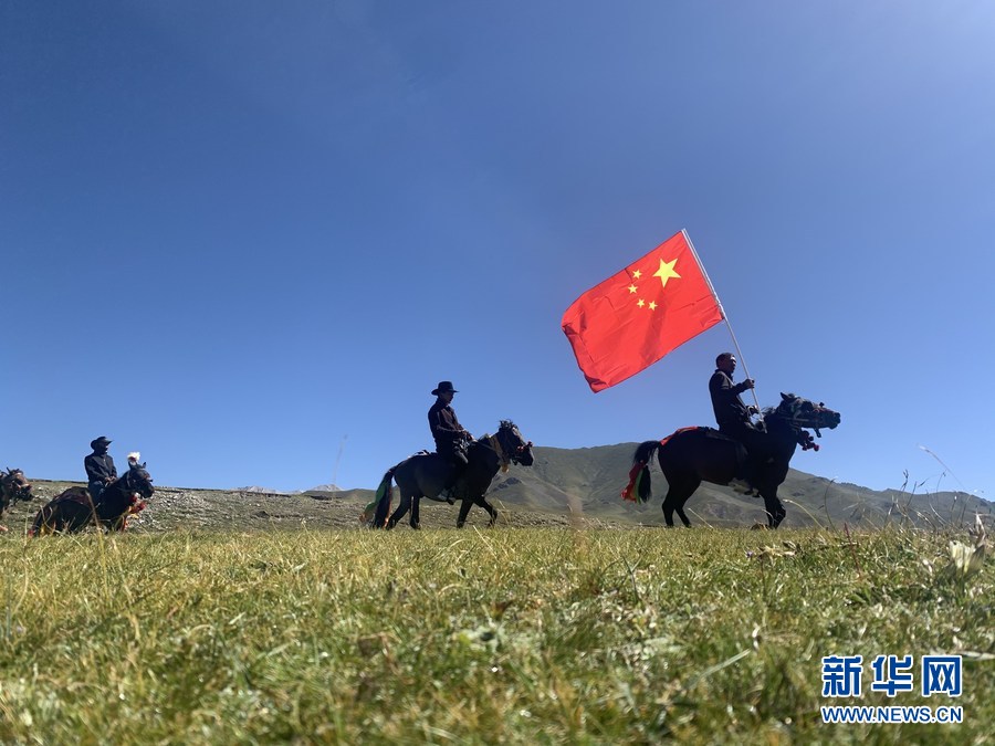 這是青海省玉樹藏族自治州治多縣的生態(tài)管護(hù)員騎馬進(jìn)行巡護(hù)。(2020年8月26日攝)新華社記者 李琳海 攝