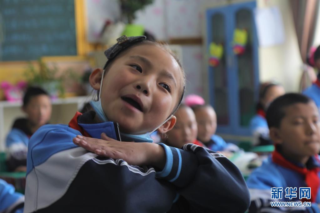 青海省玉樹藏族自治州玉樹市第三完全小學(xué)的學(xué)生才卓瑪在課堂上(4月12日攝)。新華社記者 趙玉和 攝