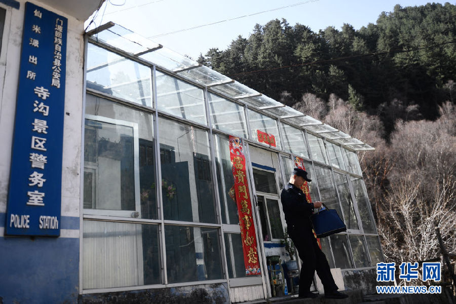 4月16日,在寺溝景區(qū)警務室,趙延壽準備進村提供警務服務。新華社記者 張龍 攝