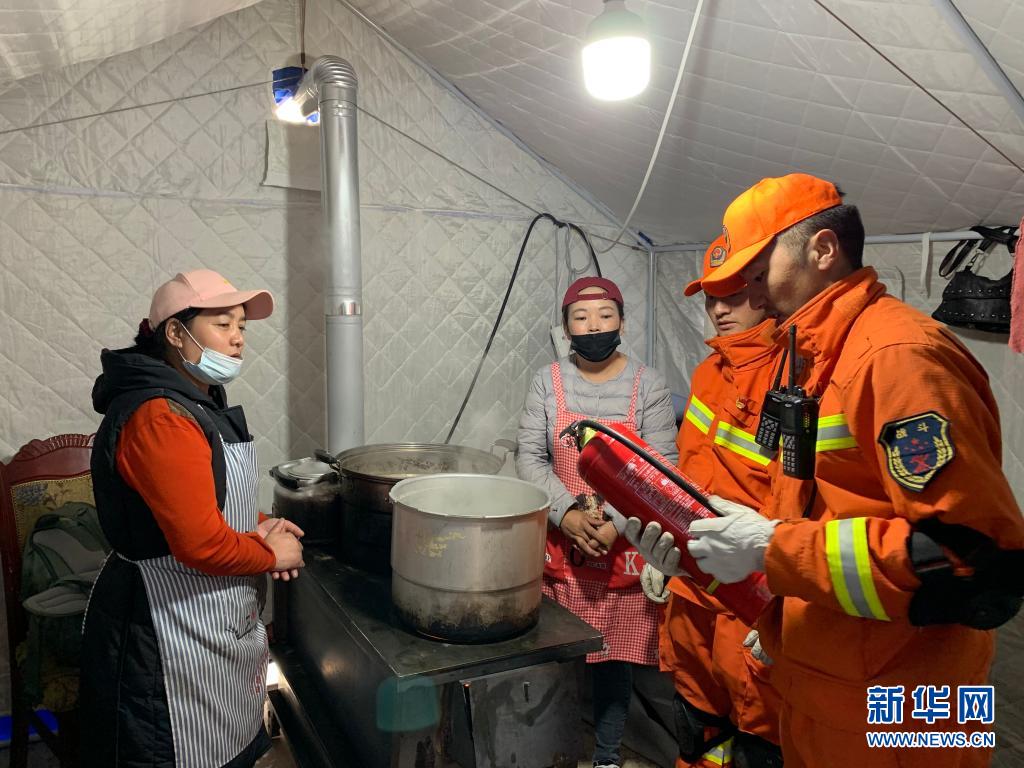 25日,青海瑪多“5·22”7.4級(jí)地震災(zāi)后第四天,瑪多縣城飄起小雪。青海省玉樹(shù)藏族自治州消防救援支隊(duì)消防員群英尕丁,又來(lái)到瑪多縣民族寄宿制中學(xué)的安置區(qū)日常巡查。