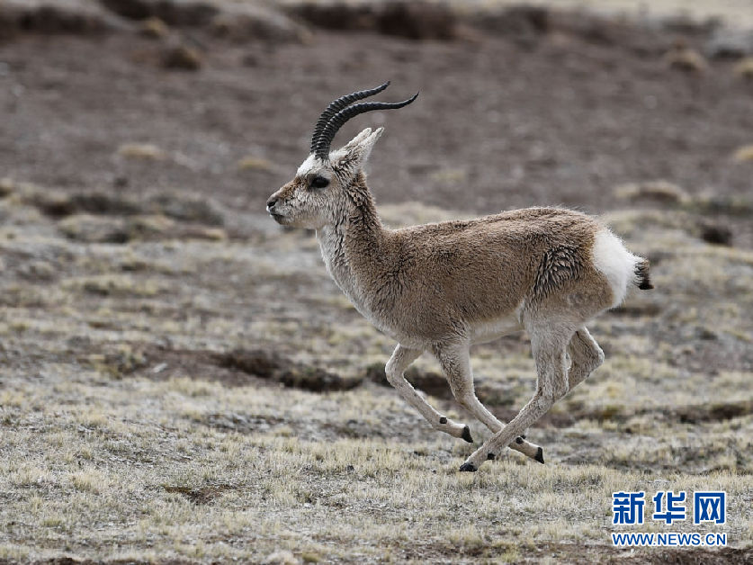5月25日,一只藏原羚在三江源國(guó)家公園黃河源園區(qū)內(nèi)奔跑。新華社記者 張龍 攝