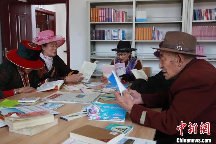 閱覽室內(nèi),三四位老人圍桌而坐,口中不停念著,“這是草原牧民口耳相傳的格薩爾詩篇,”德高說,隔壁房間的老人們正切磋藏棋、縫紉機前忙碌,“他們閑時編織門簾、口袋,放在‘愛心超市’展出、售賣,還把這種傳統(tǒng)手藝教給附近學(xué)校的小孩子?!?/p>