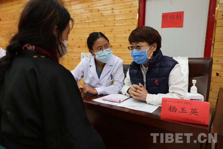 楊玉英來自首都醫(yī)科大學附屬北京地壇醫(yī)院,是中西醫(yī)結合肝病科主任醫(yī)師。這她第二次參加“同心·共鑄中國心”大型公益活動,第一次來到青海。雖然每天需要多次服藥來對抗高原反應,但她一直強調參加這次活動非常值得。