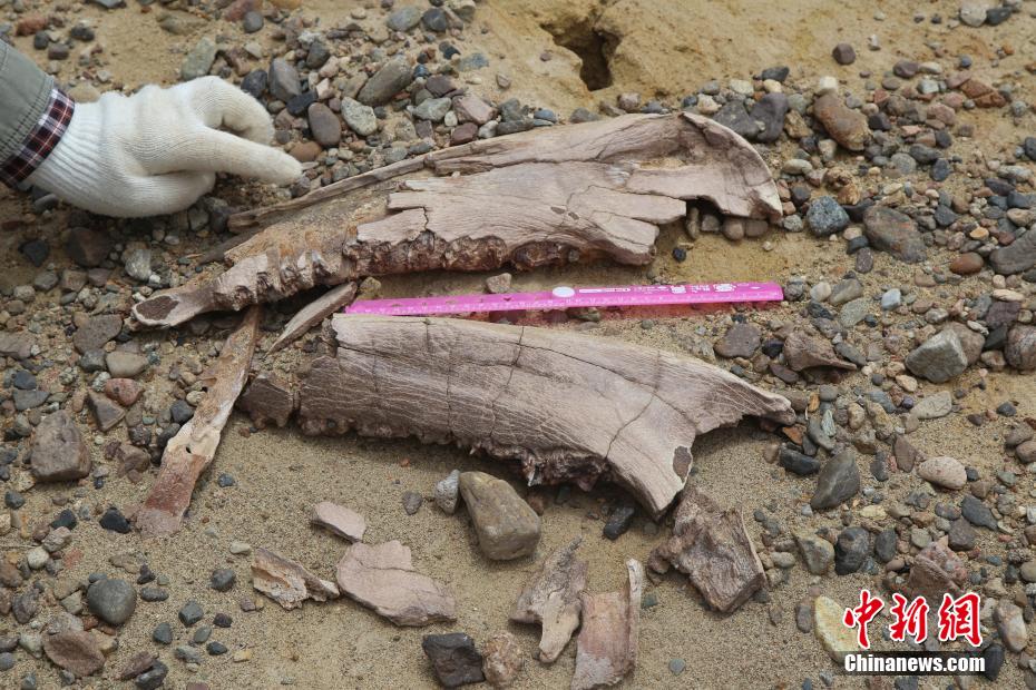 7月10日,從青海省地質(zhì)調(diào)查院獲悉,由該院承擔(dān)的“青海省古生物化石產(chǎn)地示范調(diào)查”項(xiàng)目,在青海省內(nèi)發(fā)現(xiàn)疊層石、古脊椎動(dòng)物和魚類3處具有較高科學(xué)研究價(jià)值的化石產(chǎn)地。圖為犀牛下頜骨。 保廣普 攝