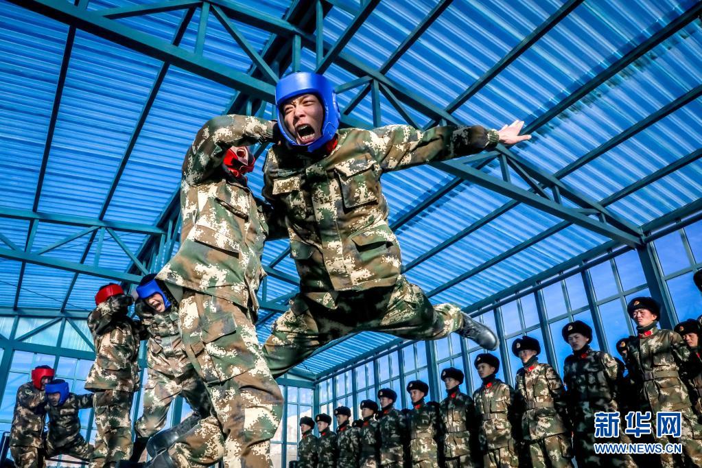 武警青海總隊執(zhí)勤支隊執(zhí)勤七中隊官兵在訓(xùn)練館訓(xùn)練(2月1日攝)。新華社 楊浩 攝