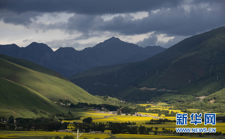 7月24日在道孚縣泰寧鎮(zhèn)拍攝的油菜花海。新華社記者 江宏景 攝