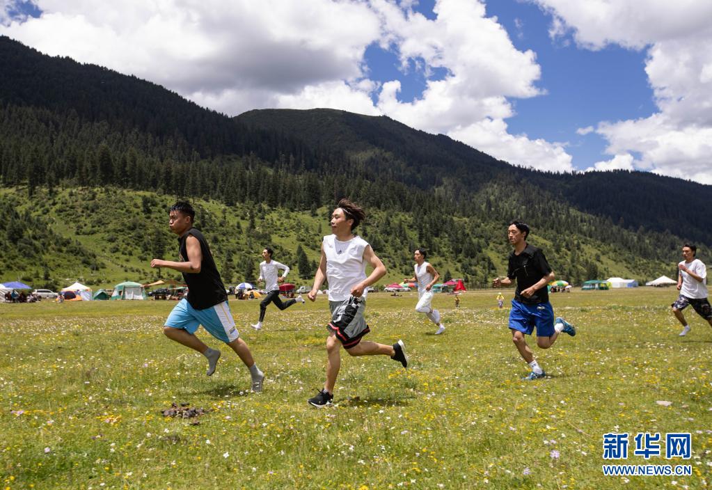 7月23日,在道孚縣亞卓鎮(zhèn),當(dāng)?shù)夭刈迦罕娫谔?。新華社記者 江宏景 攝