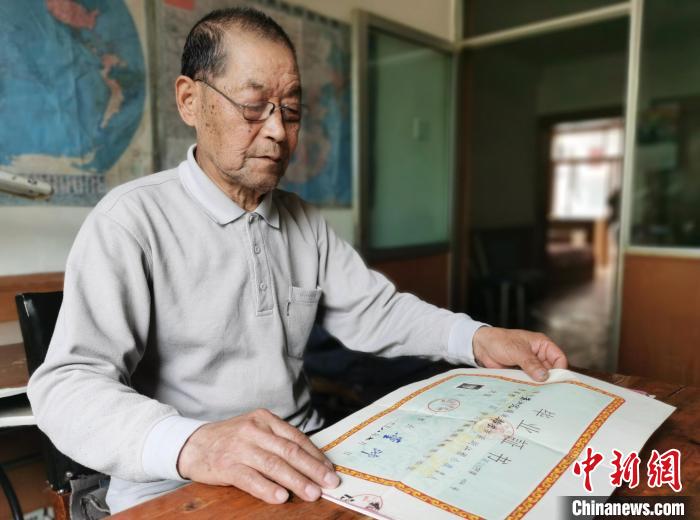 圖為朱汝完整理個人在浙江省永康中學(xué)初中部的畢業(yè)證書。張?zhí)砀?攝