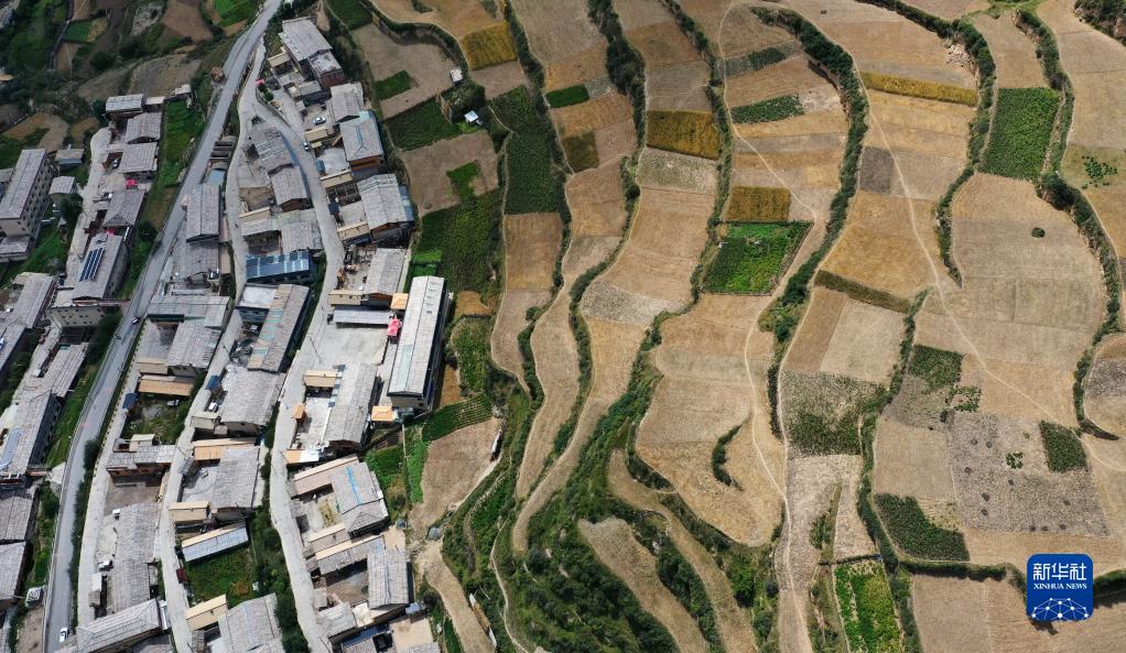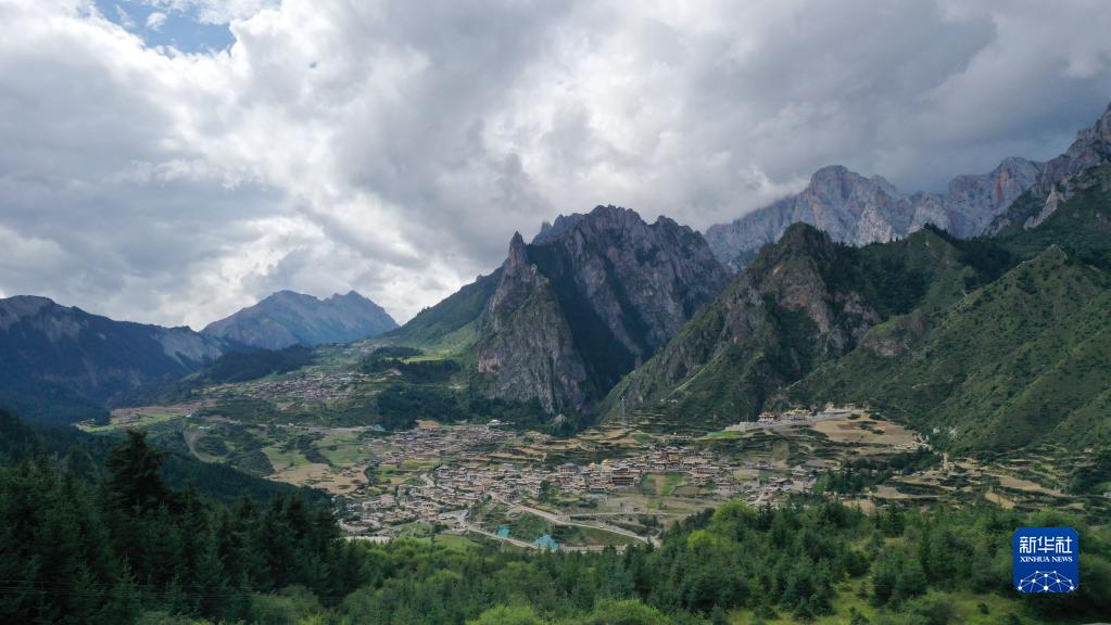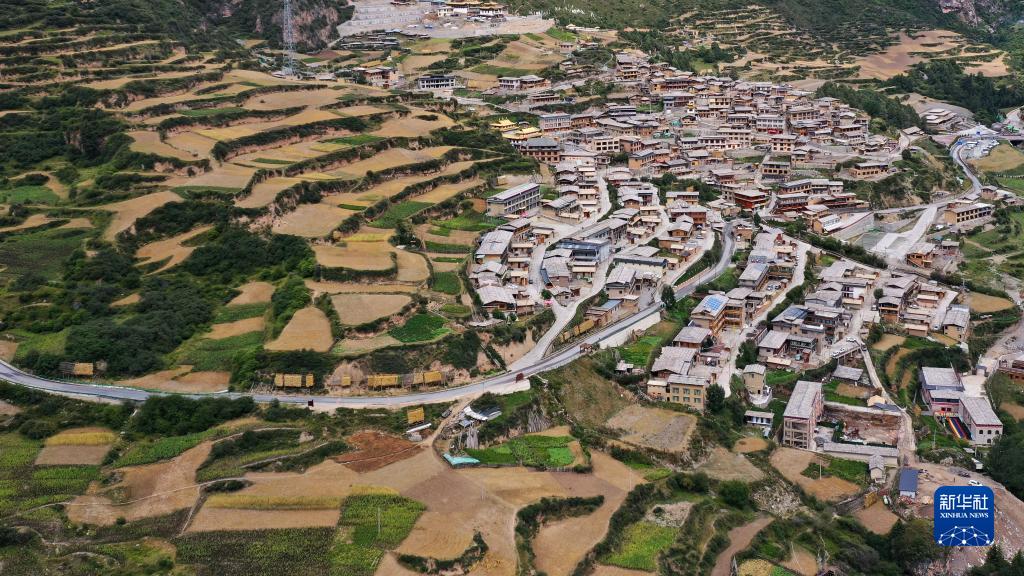 這是8月28日拍攝的扎尕那美麗風(fēng)光(無(wú)人機(jī)照片)。新華社記者 陳斌 攝