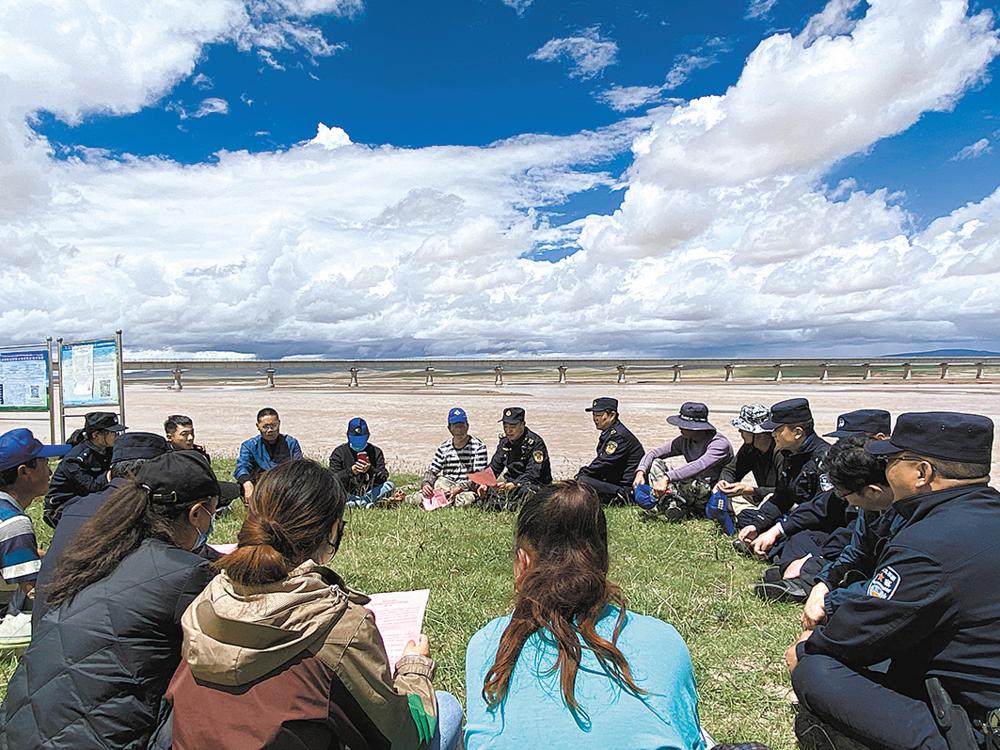 多部門聯(lián)合協(xié)作的網(wǎng)格化管理體系,為唐古拉山鎮(zhèn)沱沱河的長江禁捕工作筑起了一道堅實防線。2020年12月,唐古拉山鎮(zhèn)人民政府結合河湖長制工作,與唐古拉山鎮(zhèn)派出所、鎮(zhèn)森林公安局派出所協(xié)商,制定了“一河一警長”工作機制。唐古拉山鎮(zhèn)派出所民警周治安說:“為加強河湖及魚類資源保護的執(zhí)法保障,我們要做到每條河流有人巡查,每個河段有人管理,四天左右都會巡查一次,通過內(nèi)外協(xié)作配合,形成強大工作合力,有效打擊了涉水違法行為,也構建起長江禁捕管理工作的長效機制。”