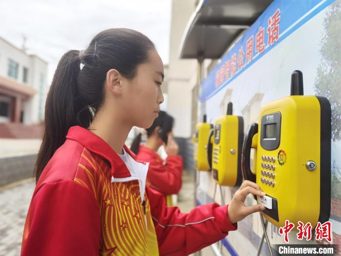 圖為住校生刷電子?;?,使用校園智能公用電話給家人打電話。張婧 攝