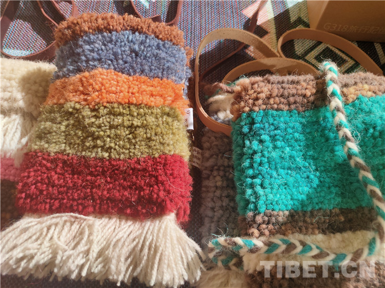 傳統(tǒng)妮熱文創(chuàng)品攤位前,妮熱挎包、妮熱靠墊、妮熱掛毯、妮熱冰箱墊等產(chǎn)品色彩質(zhì)樸、質(zhì)感柔軟,既蘊(yùn)含傳統(tǒng)手藝價值,又兼具日常實(shí)用性和時尚性。以理塘藏戲?yàn)槲幕栄苌_發(fā)的明信片、鑰匙扣、T恤、吊墜等小工藝品用色古典、造型精美,吸引了不少游客駐足選購。