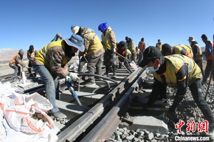 圖為工人對達瓊果站2號道岔精細搗固。中鐵十二局集團鐵路養(yǎng)護公司當雄車間供圖