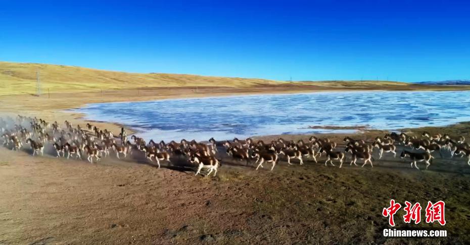 圖為藏野驢種群在草原上奔跑。多太 攝