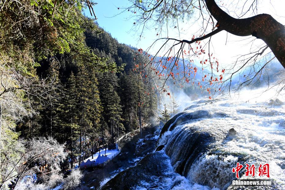 1月5日,冬日的九寨溝一片銀裝素裹的景象,顯得格外的寂靜,仿佛人間仙境。