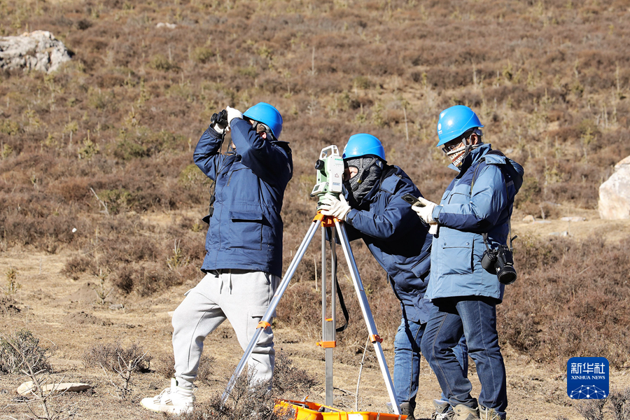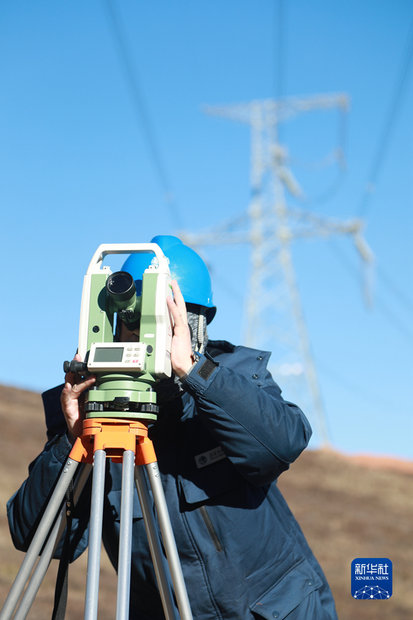 1月19日,國(guó)家電網(wǎng)青海省電力公司檢修公司輸電檢修中心專業(yè)班組成員使用經(jīng)緯儀進(jìn)行線路測(cè)量工作。新華社記者 趙玉和 攝