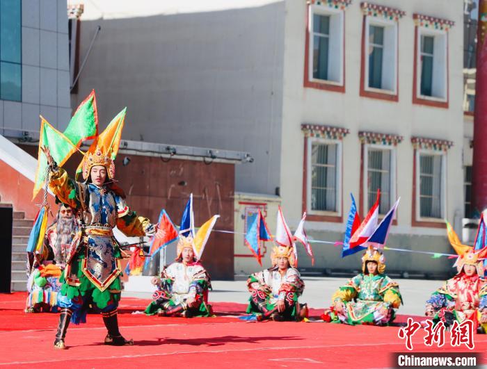 為保護和傳承文化遺產(chǎn),弘揚優(yōu)秀傳統(tǒng)文化,國家級非物質(zhì)文化遺產(chǎn)代表性項目青海馬背藏戲《丹瑪之子》14日在青海省果洛州格薩爾文化廣場展演。