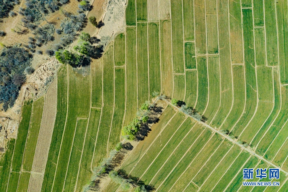 一塊塊麥田錯落有致裝扮著大地。新華網(wǎng) 宋忠勇 攝
