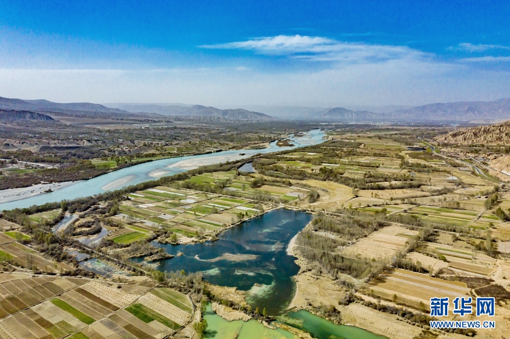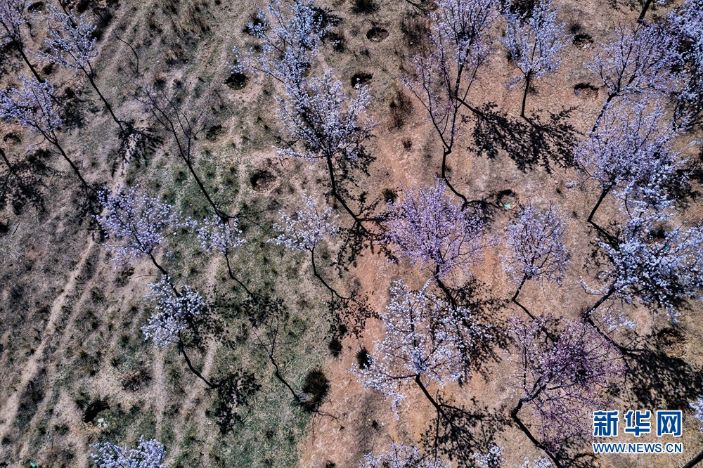 在黃河岸邊,邂逅花開成海的浪漫,感受春天的氣息。新華網(wǎng) 宋忠勇 攝