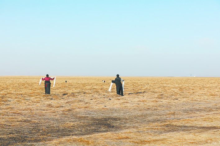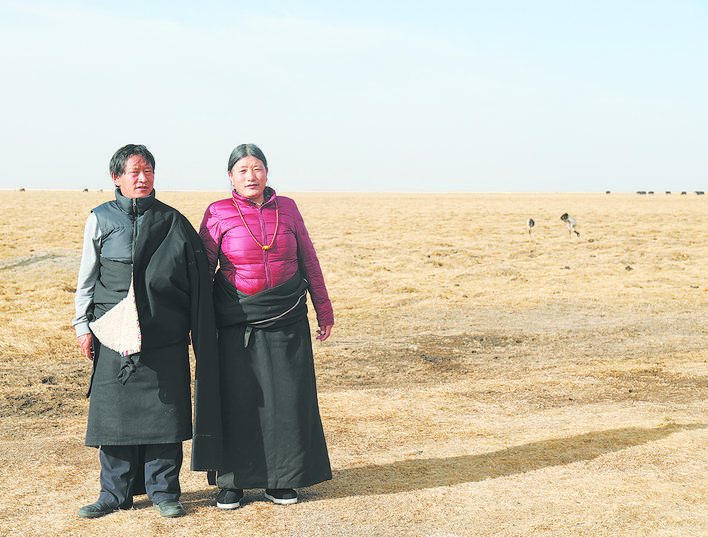年復(fù)一年,如科每天帶上工作證、望遠(yuǎn)鏡、茶水和干饃饃,從他居住的觀測(cè)站出發(fā),騎著摩托車巡護(hù)濕地;他的妻子沿著湖泊撿拾垃圾,守護(hù)著黑頸鶴的棲居環(huán)境,守護(hù)著野生動(dòng)物的美好家園。
