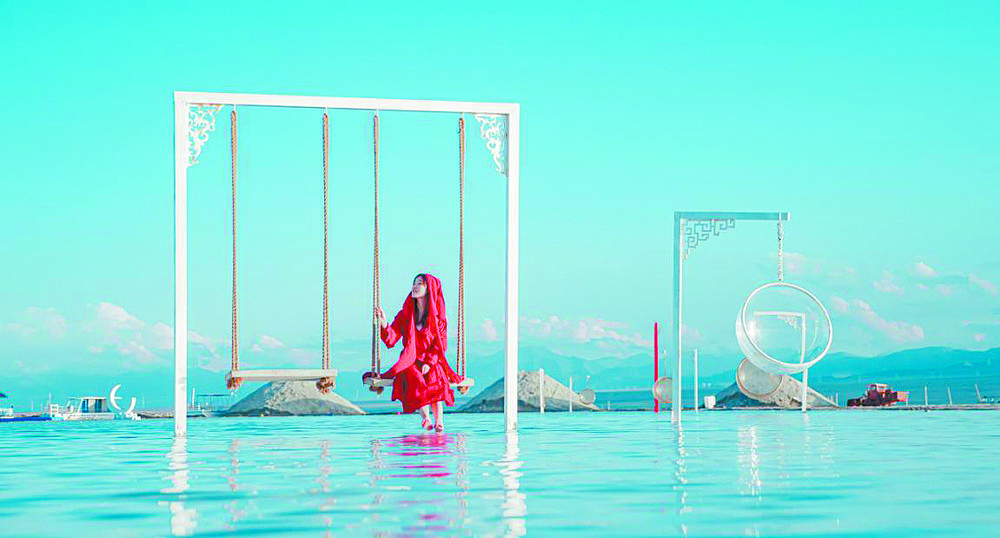 發(fā)表于網(wǎng)絡(luò)上的一組照片:平靜的湖面,清晰倒映著藍(lán)天、白云、山巒,還有擺出各種造型的人影;而夜景,浩瀚的銀河下,星空與湖面融為一色,夢幻而迷離。照片先是在朋友圈轉(zhuǎn)發(fā),繼而在各大平臺流傳,“流量”迅速集聚,讓茶卡鹽湖從一個制鹽企業(yè)“爆紅”成為熱門旅游景點(diǎn),“天空之鏡”蜚聲國內(nèi)外。