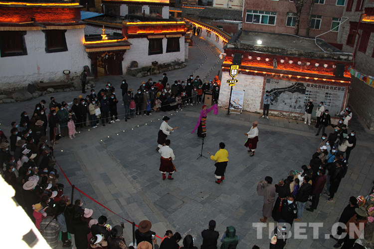 中國(guó)西藏網(wǎng)訊 “不分你我彼此,相聚共舞此曲……”長(zhǎng)袖翻飛,弦樂(lè)聲聲,5月1日晚,四川省甘孜藏族自治州理塘縣4A級(jí)景區(qū)勒通古鎮(zhèn)·千戶藏寨內(nèi),理塘縣格聶弦子協(xié)會(huì)、千戶藏寨弦子隊(duì)的表演贏得了游客的陣陣喝彩。