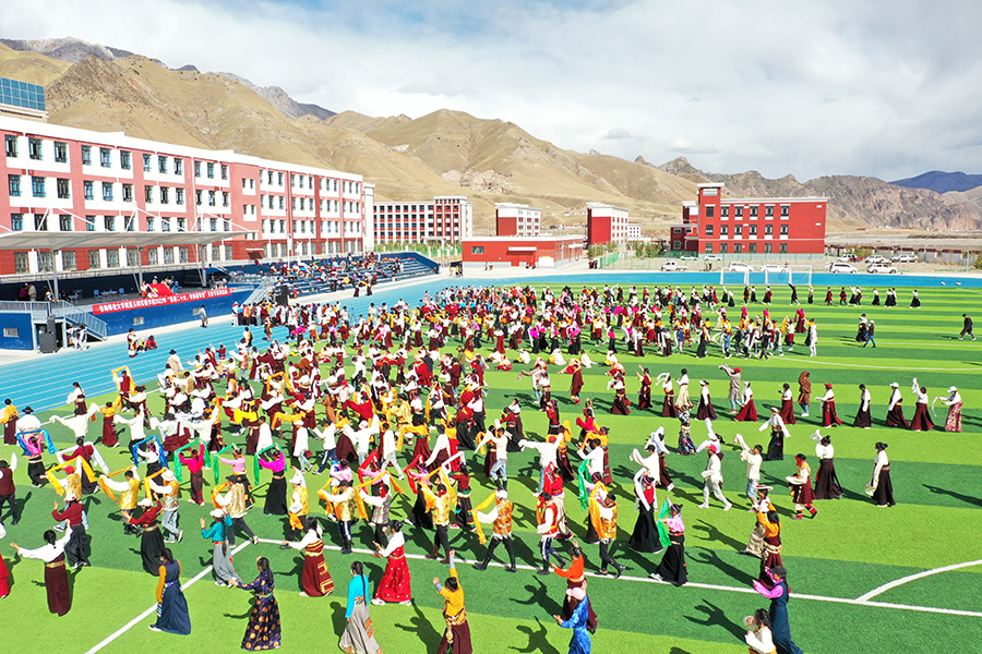 青海師范大學附屬玉樹實驗學校于2019年建成,是北京市教委、首都師大、玉樹州政府、青海師范大學共同興辦的民族高中?!皩W?;凇咴厣?、現(xiàn)代氣息、師大風范’這樣的起點,希望培養(yǎng)出有情懷、有中國靈魂、有世界眼光的民族英才?!狈蓭r說。