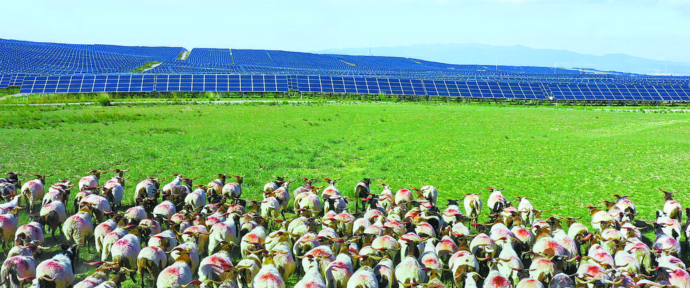 水光互補(bǔ)光伏電站的光伏羊。國家電投集團(tuán)黃河上游水電開發(fā)有限責(zé)任公司供圖