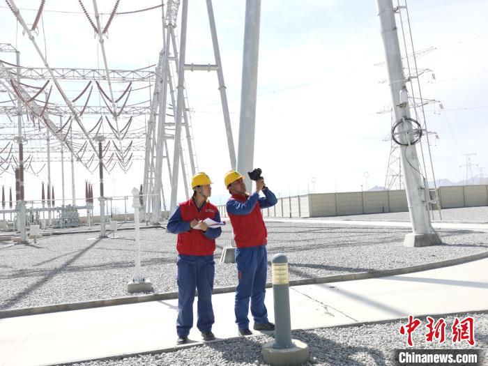 圖為國網(wǎng)青海超高壓公司格爾木運(yùn)維分部專業(yè)人員全力以赴做好電網(wǎng)保電工作。趙旻珺 攝