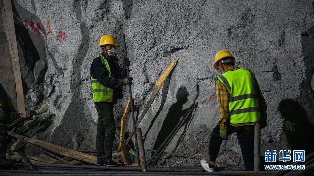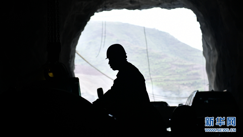 工人在引水隧洞施工現(xiàn)場作業(yè)。