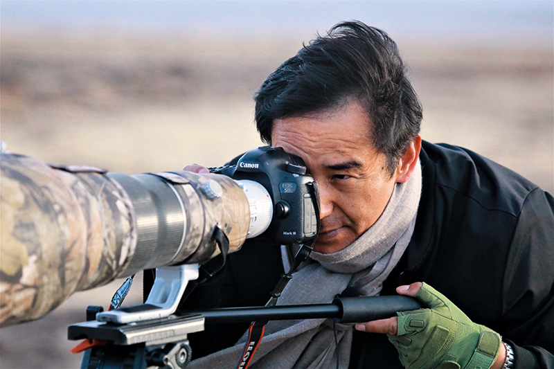 夕陽西下,大風(fēng)肆虐。49歲的才項南加系上圍巾趕忙下車,從后備箱包裹嚴實的毛毯里拿出相機和三腳架,稍做調(diào)試后,便扛著裝備三步并作兩步地趕往200米外的一片濕地。“趕緊去看看,兩只黑頸鶴在喝水呢!”他說。
