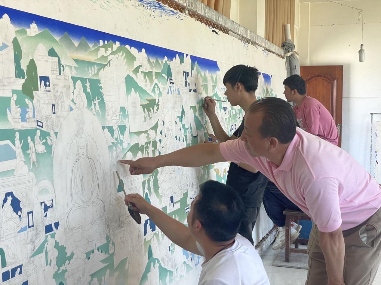 “我從13歲就開始跟著父親學(xué)習(xí),建筑彩繪工作量大,工作環(huán)境艱苦,很多年輕人不愿意學(xué)。但是我已經(jīng)堅(jiān)持學(xué)習(xí)12年了,作為市級(jí)熱貢藝術(shù)代表性傳承人,我也想像父親一樣,把它傳承下去。”更登的兒子普華尖措說道。