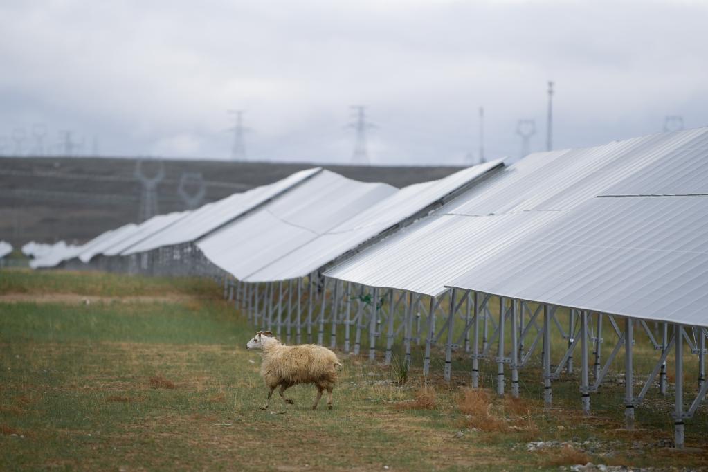 牧民索南卓瑪在光伏產(chǎn)業(yè)園區(qū)放牧。