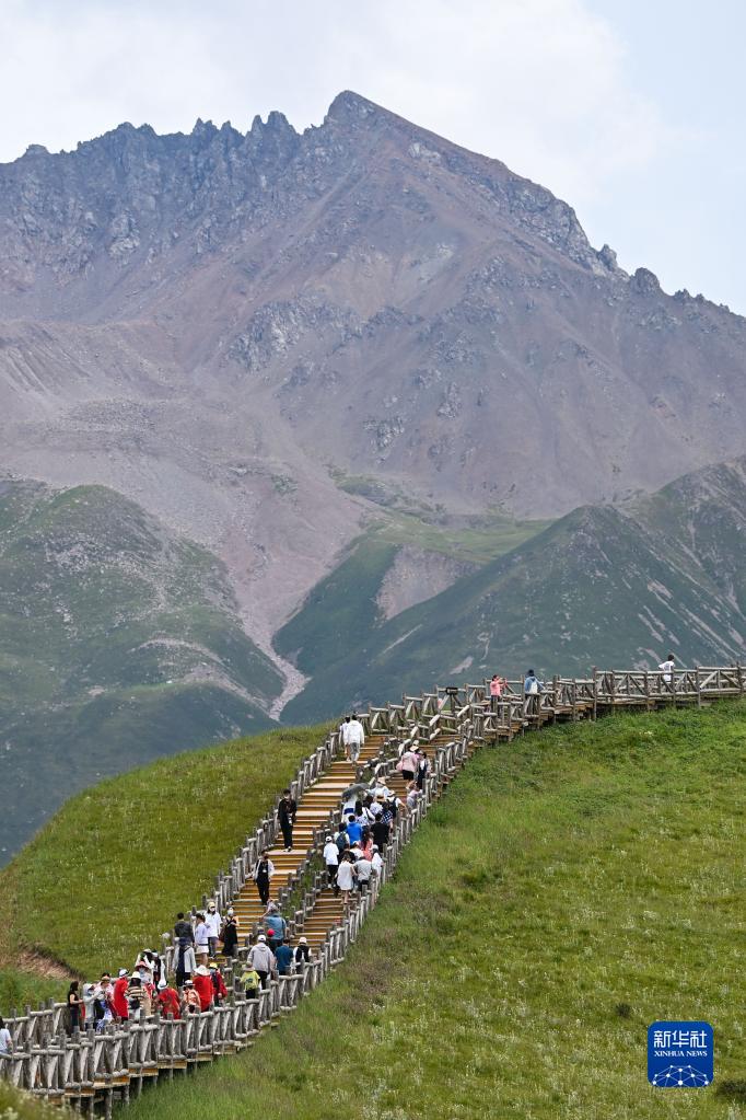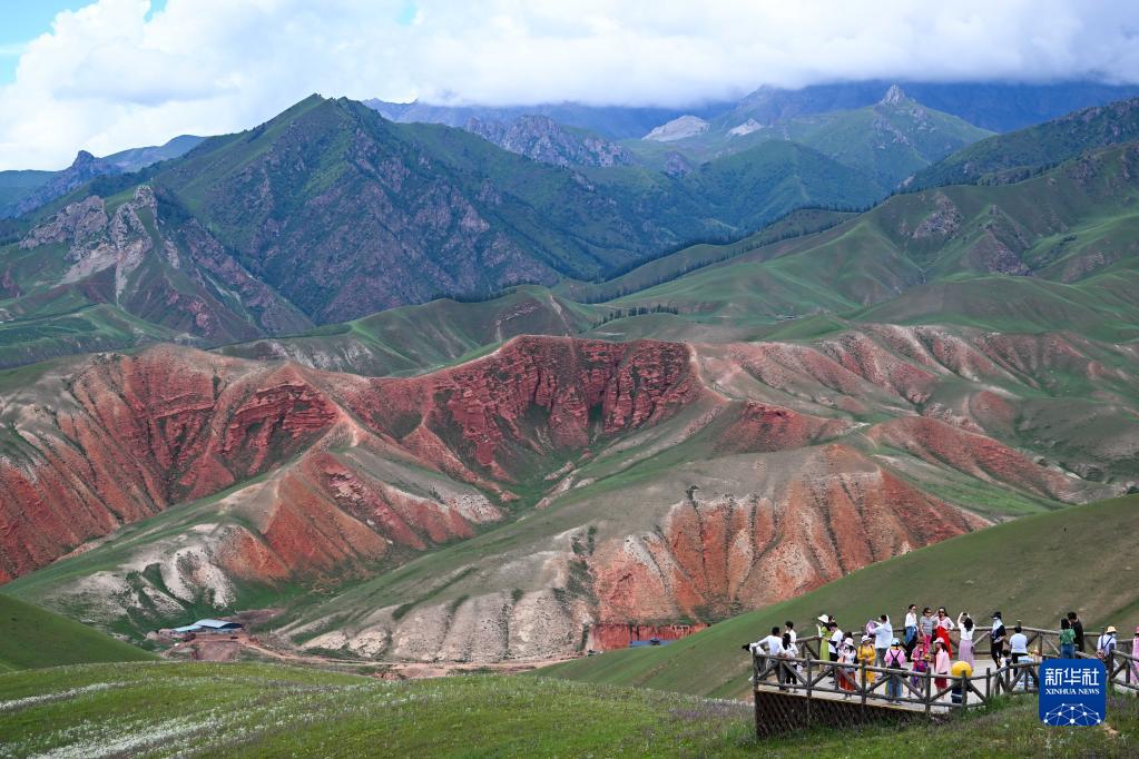 8月10日,游客在青海省海北藏族自治州祁連縣卓爾山景區(qū)內游玩。新華社記者 張龍 攝