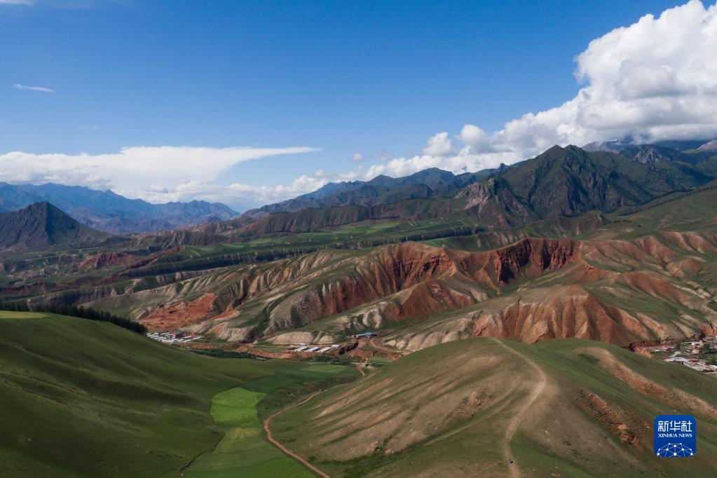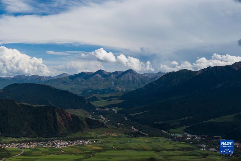 青海省海北藏族自治州祁連縣風光(8月10日攝,無人機照片)。新華社記者 張龍 攝