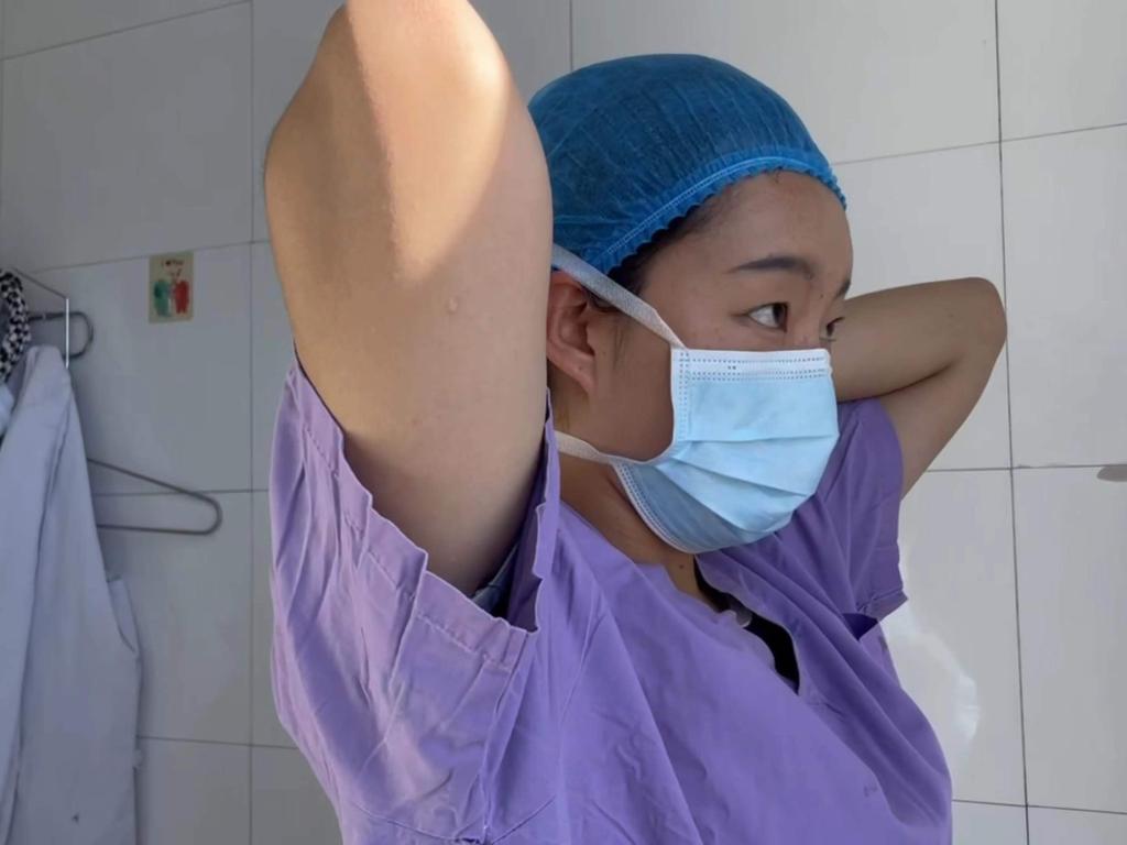 “第一回進手術室,非常緊張!”桑周拉毛換好手術服后,對著鏡子把頭發(fā)扎緊。然后,她按照手術室麻醉醫(yī)生的要求,把耳邊的碎發(fā)一絲不茍地塞進帽子,然后轉身走進了手術室。