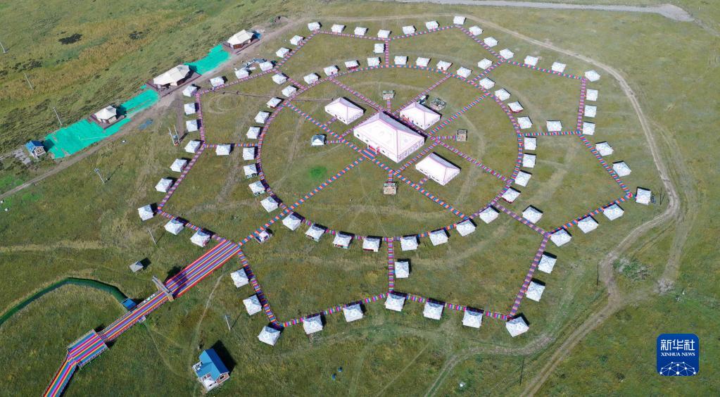 這是甘肅省甘南藏族自治州碌曲縣尕海鎮(zhèn)尕秀村帳篷城景區(qū)(無人機(jī)照片,2021年9月9日攝)。新華社記者 陳斌 攝