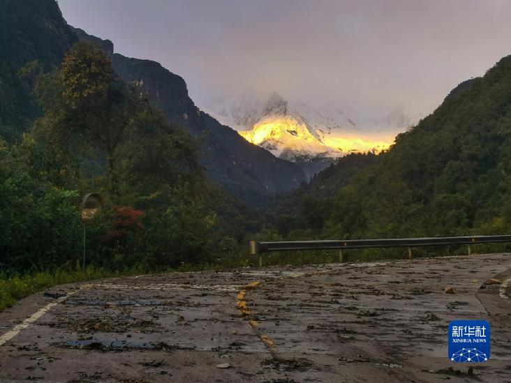 這是9月10日拍攝的海螺溝景區(qū)內(nèi)部道路和貢嘎雪山側(cè)峰。新華社發(fā)(四川省冶勘設(shè)計集團有限公司供圖)